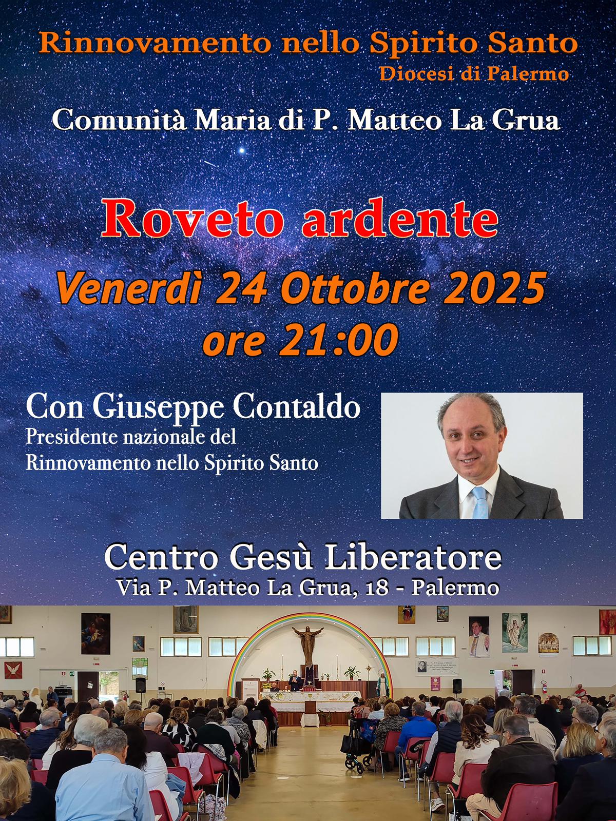 È promosso dalla Comunità Maria di Padre Matteo La Grua il Roveto ardente in programma a Palermo, presso il Centro Gesù Liberatore, venerdì 24 ottobre 2025, alle ore 21.00.