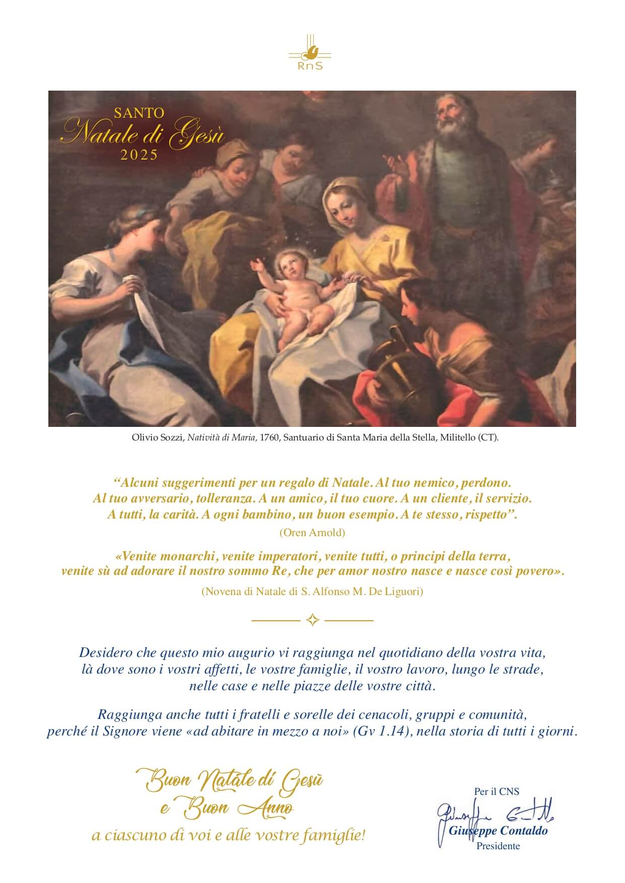 Desidero che questo mio augurio vi raggiunga nel quotidiano della vostra vita,